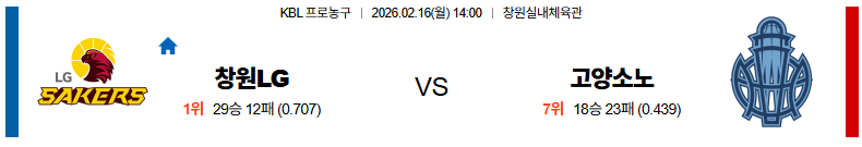 창원LG 대 고양소노 KBL 02월16일 맞대결 생중계, 스포츠중계, 스포츠분석
