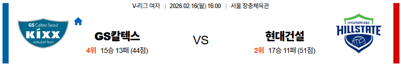 GS칼텍스 대 현대건설 V리그(여) 02월16일 맞대결 생중계, 스포츠중계, 스포츠분석