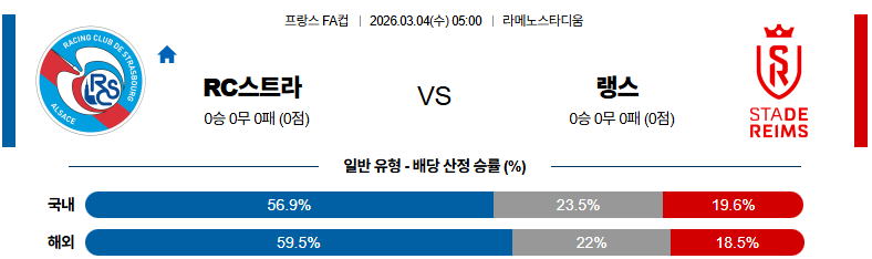스트라스부르 대 랑스 프랑스FA컵 03월04일 맞대결 생중계, 스포츠중계, 스포츠분석