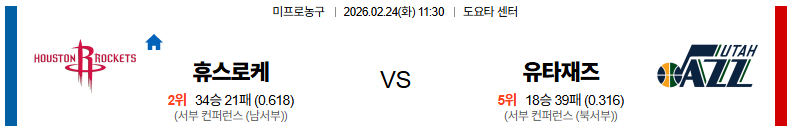 휴스턴 대 유타 NBA 02월24일 맞대결 생중계, 스포츠중계, 스포츠분석