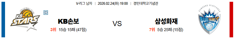 KB손해보험 대 삼성화재 V리그 02월24일 맞대결 생중계, 스포츠중계, 스포츠분석