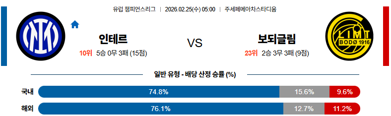 인터밀란 대 보되글림트 UEFA챔피언스리그 02월25일 맞대결 생중계, 스포츠중계, 스포츠분석