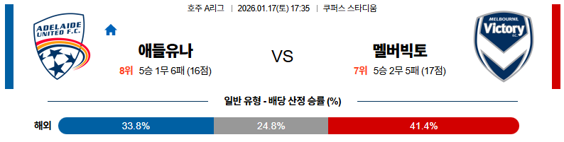 애들레이드 대 멜버른빅토리 호주A리그 01월17일 맞대결 생중계, 스포츠중계, 스포츠분석