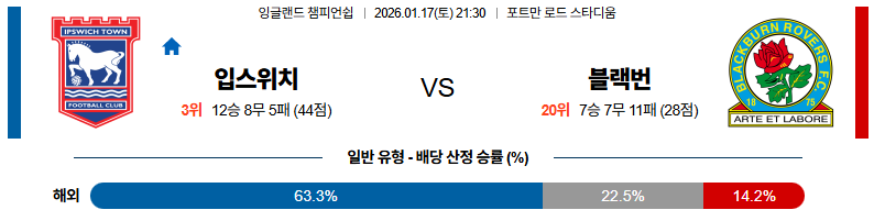 입스위치 대 블랙번 잉글랜드챔피언쉽 01월17일 맞대결 생중계, 스포츠중계, 스포츠분석
