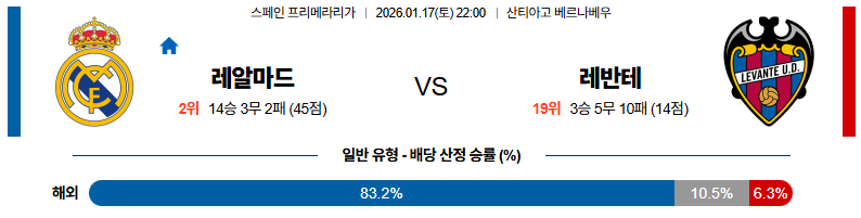 레알마드리드 대 레반테 라리가 01월17일 맞대결 생중계, 스포츠중계, 스포츠분석