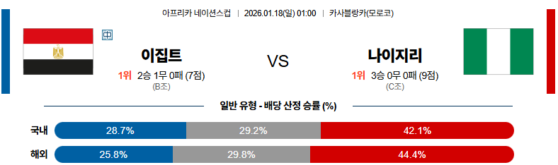 이집트 대 나이지리아 CON네이션스리그 01월18일 맞대결 생중계, 스포츠중계, 스포츠분석