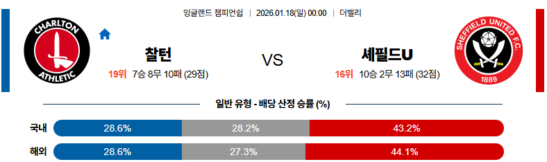 승: 셰필드 유나이티드 패: 찰튼 핸디: 핸디 패 언더오버: 오버