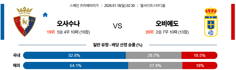 오사수나 대 오비에도 라리가 01월18일 맞대결 생중계, 스포츠중계, 스포츠분석
