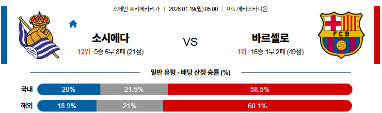소시에다드 대 바르셀로나 라리가 01월19일 맞대결 생중계, 스포츠중계, 스포츠분석