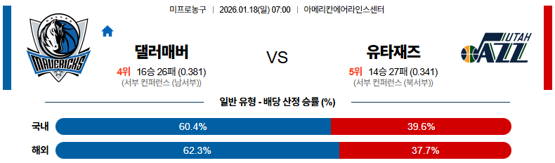 댈러스 대 유타 NBA 01월18일 맞대결 생중계, 스포츠중계, 스포츠분석