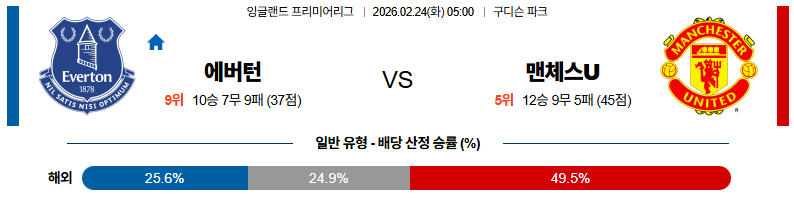에버턴 대 맨유 프리미어리그 02월24일 맞대결 생중계, 스포츠중계, 스포츠분석