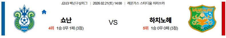 쇼난 대 하치노헤 J리그백년구상리그 02월21일 맞대결 생중계, 스포츠중계, 스포츠분석