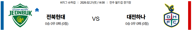 전북 대 대전 K리그슈퍼컵 02월21일 맞대결 생중계, 스포츠중계, 스포츠분석