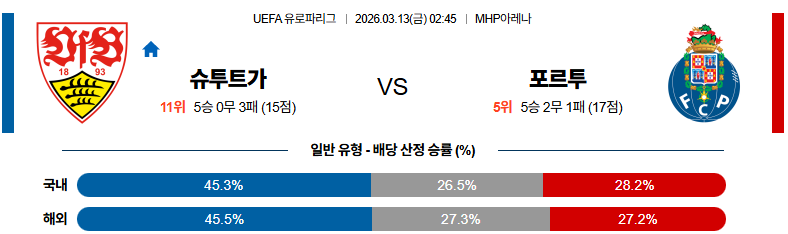 슈투트가르트 대 포르투 UEFA유로파리그 03월13일 맞대결 생중계, 스포츠중계, 스포츠분석