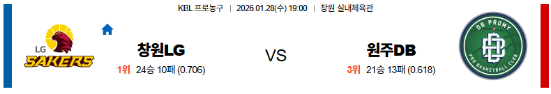 창원LG 대 원주DB KBL 01월28일 맞대결 생중계, 스포츠중계, 스포츠분석
