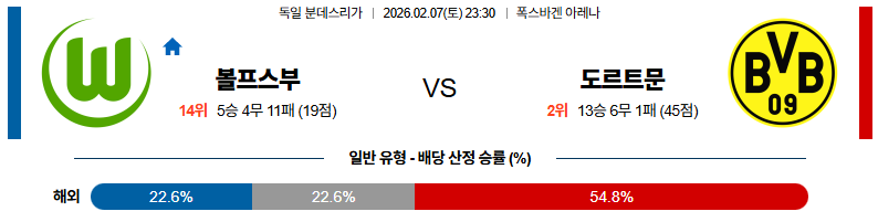 도르트문트 대 볼프스부르크 분데스리가 02월07일 맞대결 생중계, 스포츠중계, 스포츠분석