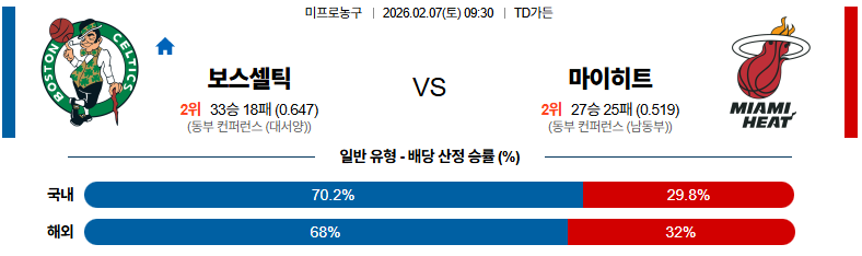 보스턴 대 마이애미 NBA 02월07일 맞대결 생중계, 스포츠중계, 스포츠분석