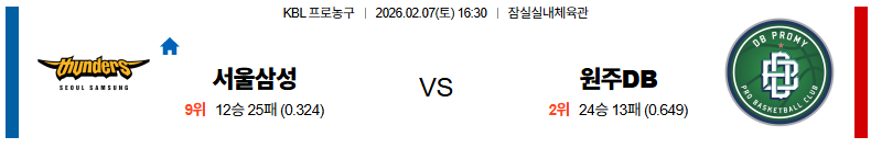 서울삼성 대 원주DB KBL 02월07일 맞대결 생중계, 스포츠중계, 스포츠분석