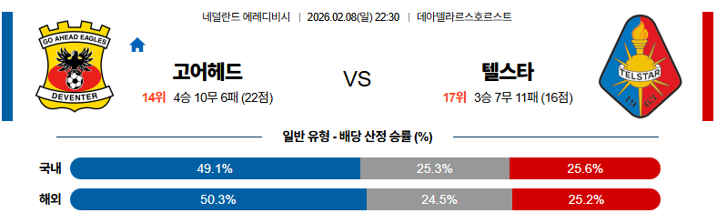 고어헤드이글스 대 텔스타 에레디비지 02월08일 맞대결 생중계, 스포츠중계, 스포츠분석