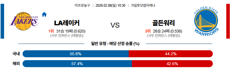 LA레이커스 대 골든스테이트 NBA 02월08일 맞대결 생중계, 스포츠중계, 스포츠분석
