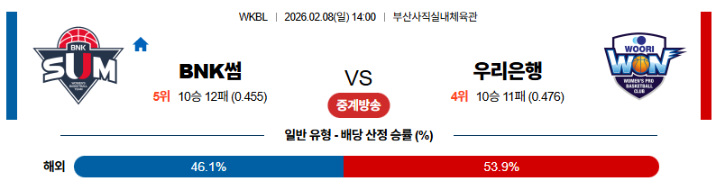 BNK썸 대 우리은행 WKBL 02월08일 맞대결 생중계, 스포츠중계, 스포츠분석