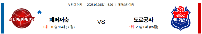 페퍼저축은행 대 한국도로공사 V리그(여) 02월08일 맞대결 생중계, 스포츠중계, 스포츠분석