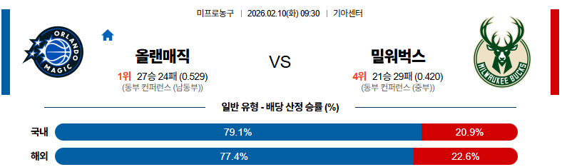 올랜도 대 밀워키 NBA 02월10일 맞대결 생중계, 스포츠중계, 스포츠분석