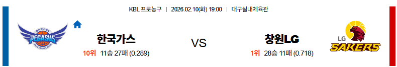 대구가스공사 대 창원LG KBL 02월10일 맞대결 생중계, 스포츠중계, 스포츠분석