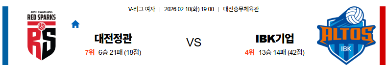정관장 대 IBK기업은행 V리그(여) 02월10일 맞대결 생중계, 스포츠중계, 스포츠분석