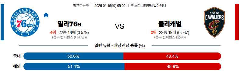 필라델피아 대 클리블랜드 NBA 01월15일 맞대결 생중계, 스포츠중계, 스포츠분석