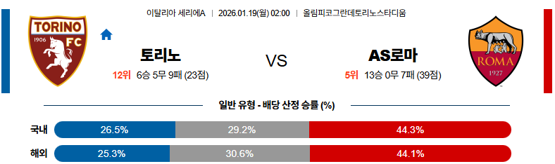 토리노 대 AS로마 01월19일세리에A 01월19일 맞대결 생중계, 스포츠중계, 스포츠분석