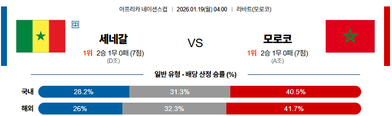 세네갈 대 모로코 CON네이션스리그 01월19일 맞대결 생중계, 스포츠중계, 스포츠분석