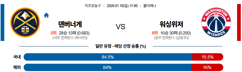 덴버 대 워싱턴 NBA 01월18일 맞대결 생중계, 스포츠중계, 스포츠분석