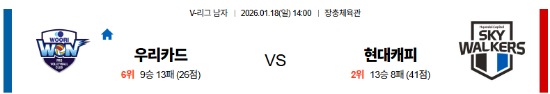 우리카드 대 현대캐피탈 V리그 01월18일 맞대결 생중계, 스포츠중계, 스포츠분석