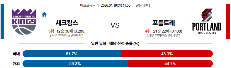 새크라멘토 대 포틀랜드 NBA 01월19일 맞대결 생중계, 스포츠중계, 스포츠분석