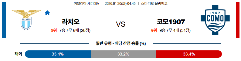 코모 대 라치오 세리에A 01월20일 맞대결 생중계, 스포츠중계, 스포츠분석