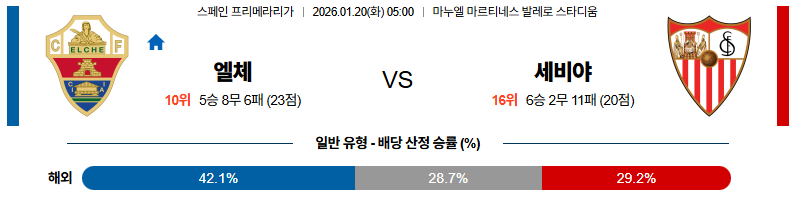 엘체 대 세비야 라리가 01월20일 맞대결 생중계, 스포츠중계, 스포츠분석