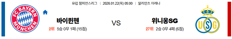 뮌헨 대 위니옹 UEFA챔피언스리그 01월22일 맞대결 생중계, 스포츠중계, 스포츠분석