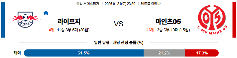 라이프치히 대 마인츠 분데스리가 01월31일 맞대결 생중계, 스포츠중계, 스포츠분석