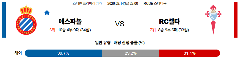 에스파뇰 대 셀타비고 라리가 02월14일 맞대결 생중계, 스포츠중계, 스포츠분석