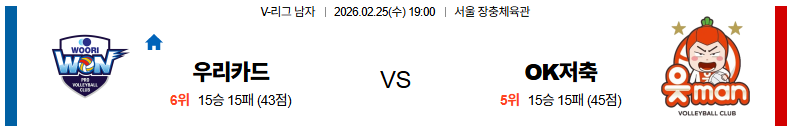 우리카드 대 OK저축은행 V리그 02월25일 맞대결 생중계, 스포츠중계, 스포츠분석